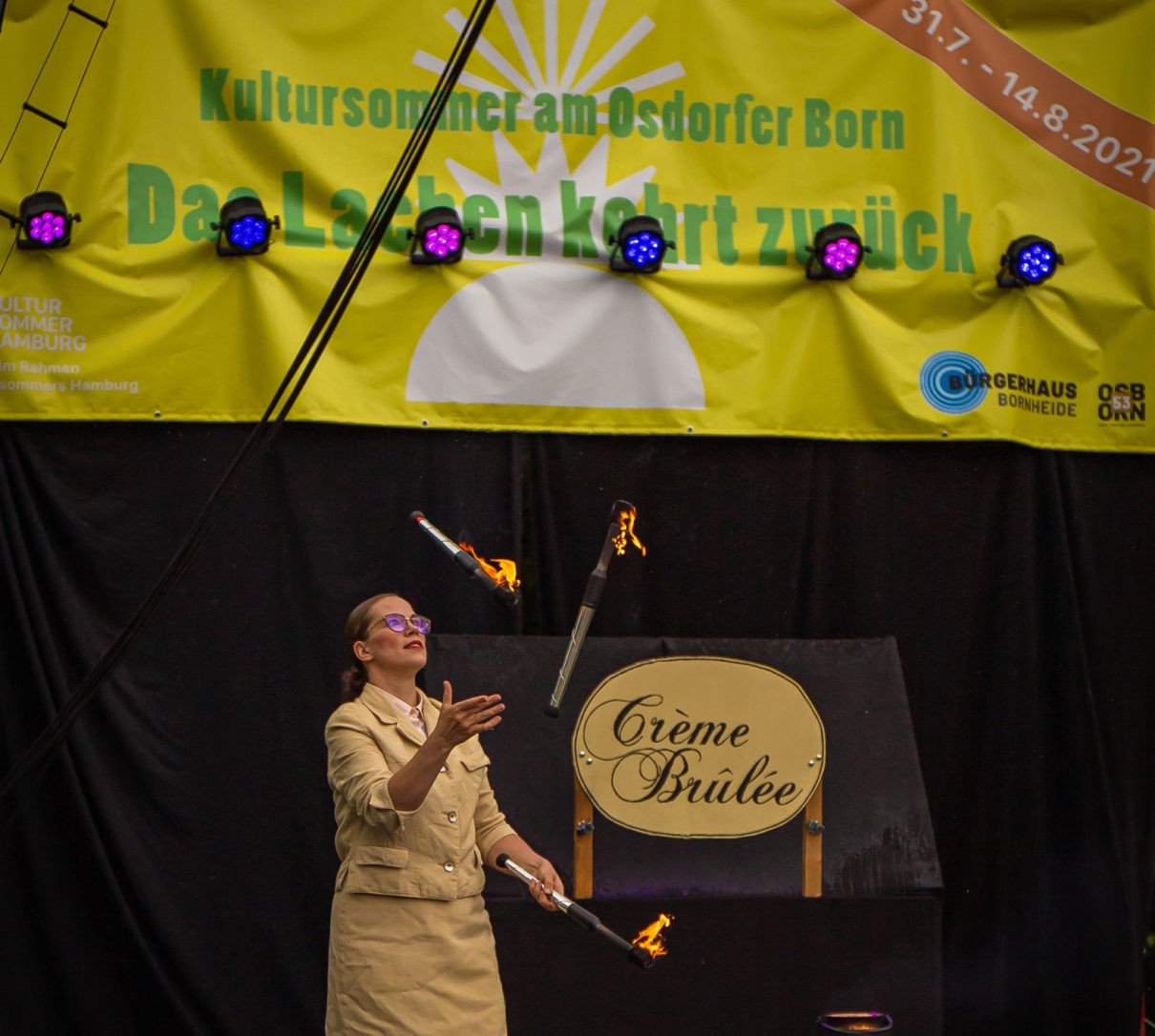 Frau Hartman gibt die energische Chefin, die mit allen Mitteln die Fassade der Kontrolle aufrechterhalten will, während Frau Dr. Rauschenbacher von einem Missgeschick ins nächste schlittert und so für Chaos sorgt. Schließlich, wenn das Publikum die beiden fast schon als unfähig und überfordert abgeschrieben hat, überraschen die vermeintlich tollpatschigen Damen mit einer feurigen Darbietung – eine spektakuläre Flambier-Show, die das Zuckerhäubchen ihrer Crème Brûlée zum Karamellisieren bringt.